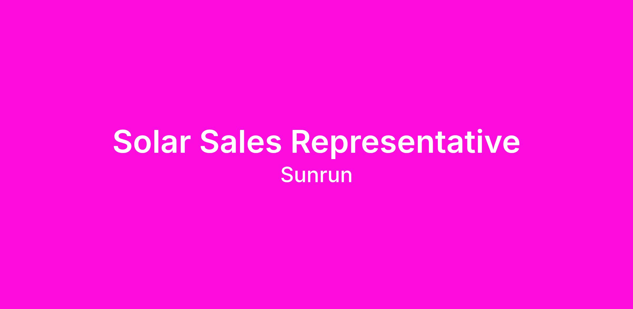 Looking for a role where your drive, grit, and ambition translate directly into income? Whether you're a seasoned closer or new to sales and ready to learn, Sunrun gives you the tools, training, and opportunity to succeed. With uncapped commission, flexible schedules, and world-class support, our Sales Specialists are helping homeowners save money and switch to clean energy, while building incredible careers.