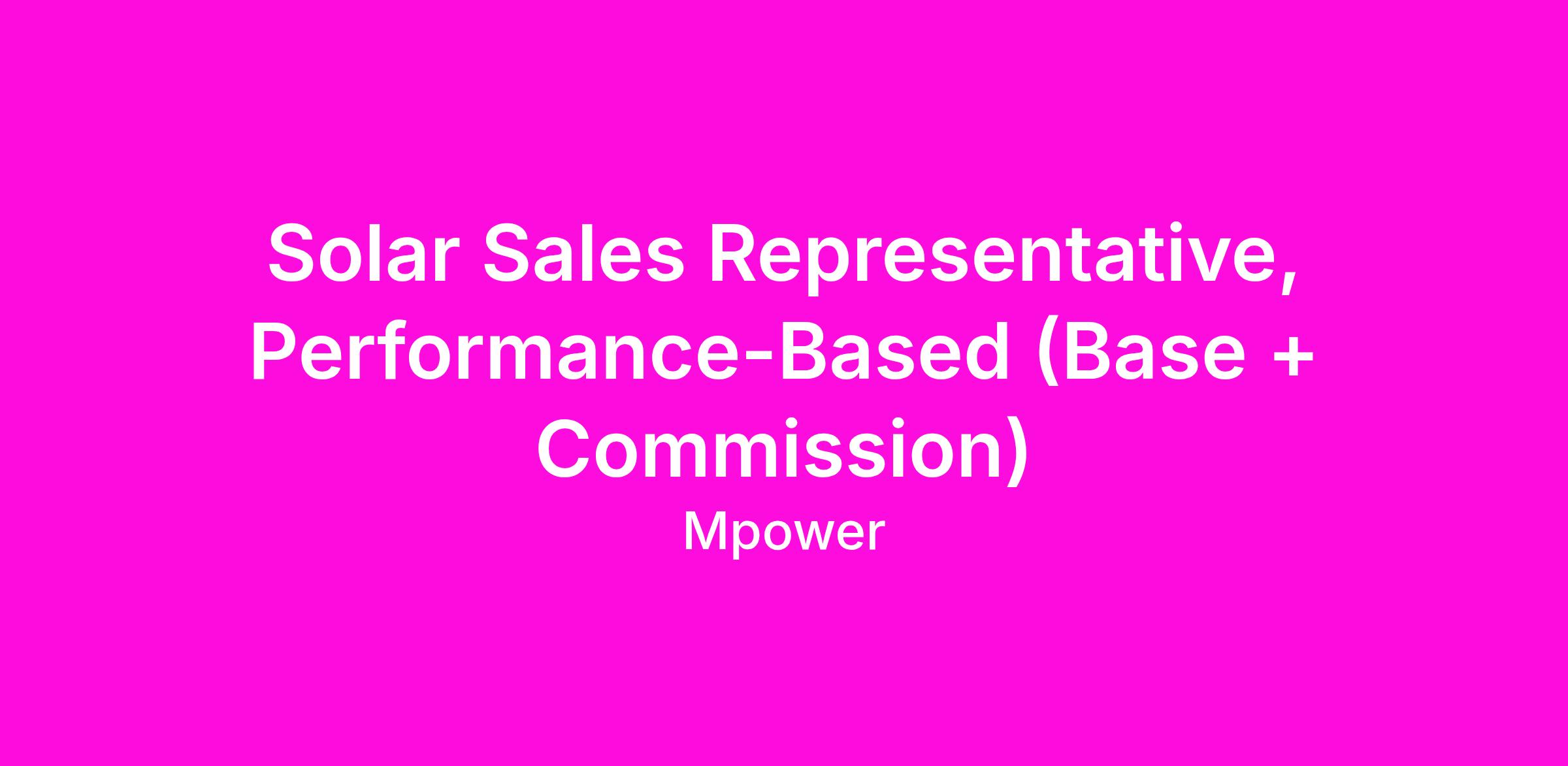 Solar Sales Representative, Performance-Based (Base + Commission)