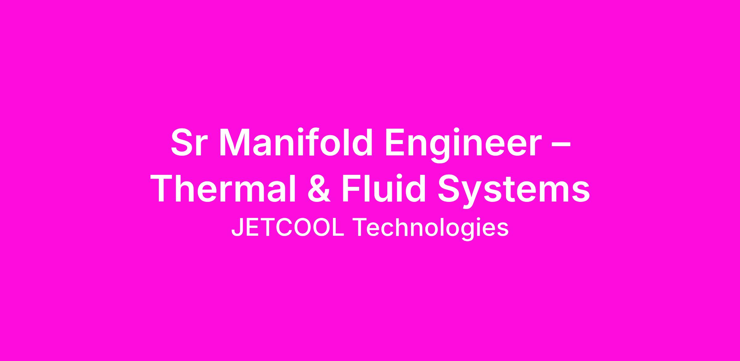Sr Manifold Engineer – Thermal & Fluid Systems