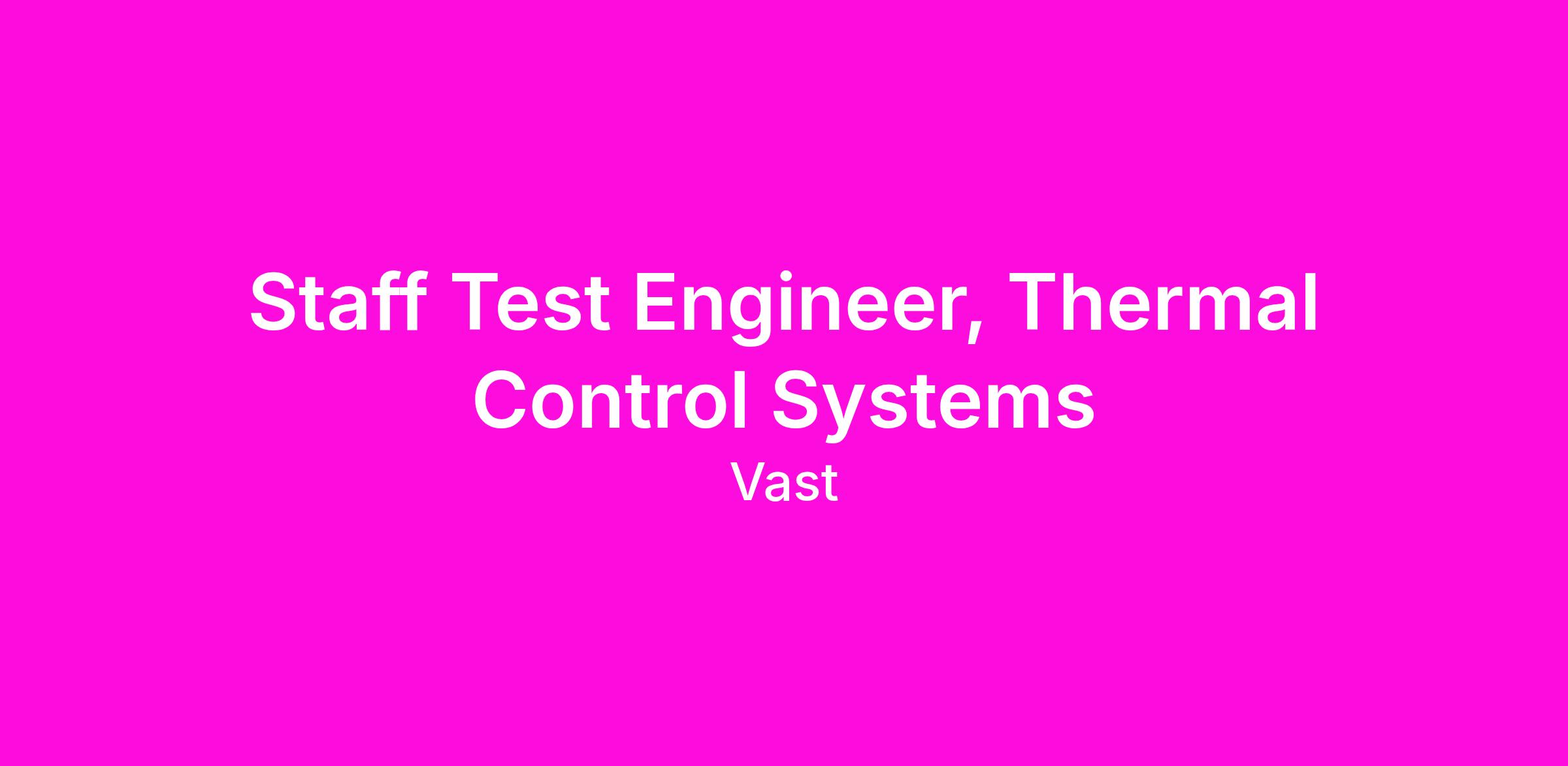 Vast is looking for a Staff Test Engineer, Thermal Control Systems, reporting to the Manager, Thermal Test Engineering, to support the development of the systems that will be required for the design and build of artificial-gravity human-rated space stations.