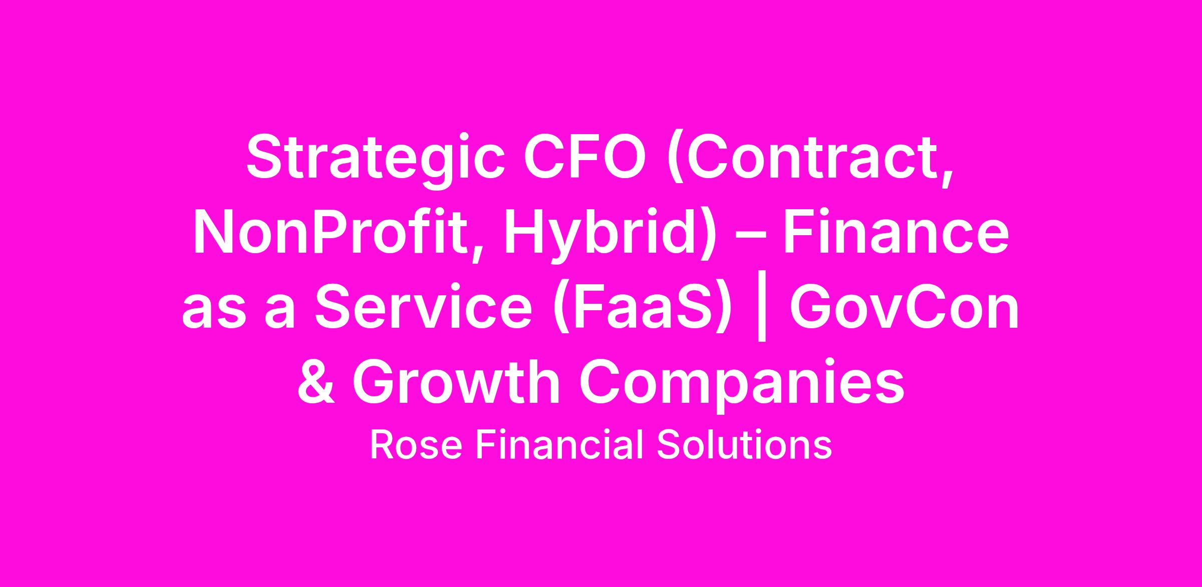 Strategic CFO (Contract, NonProfit, Hybrid) – Finance as a Service (FaaS) | GovCon & Growth Companies