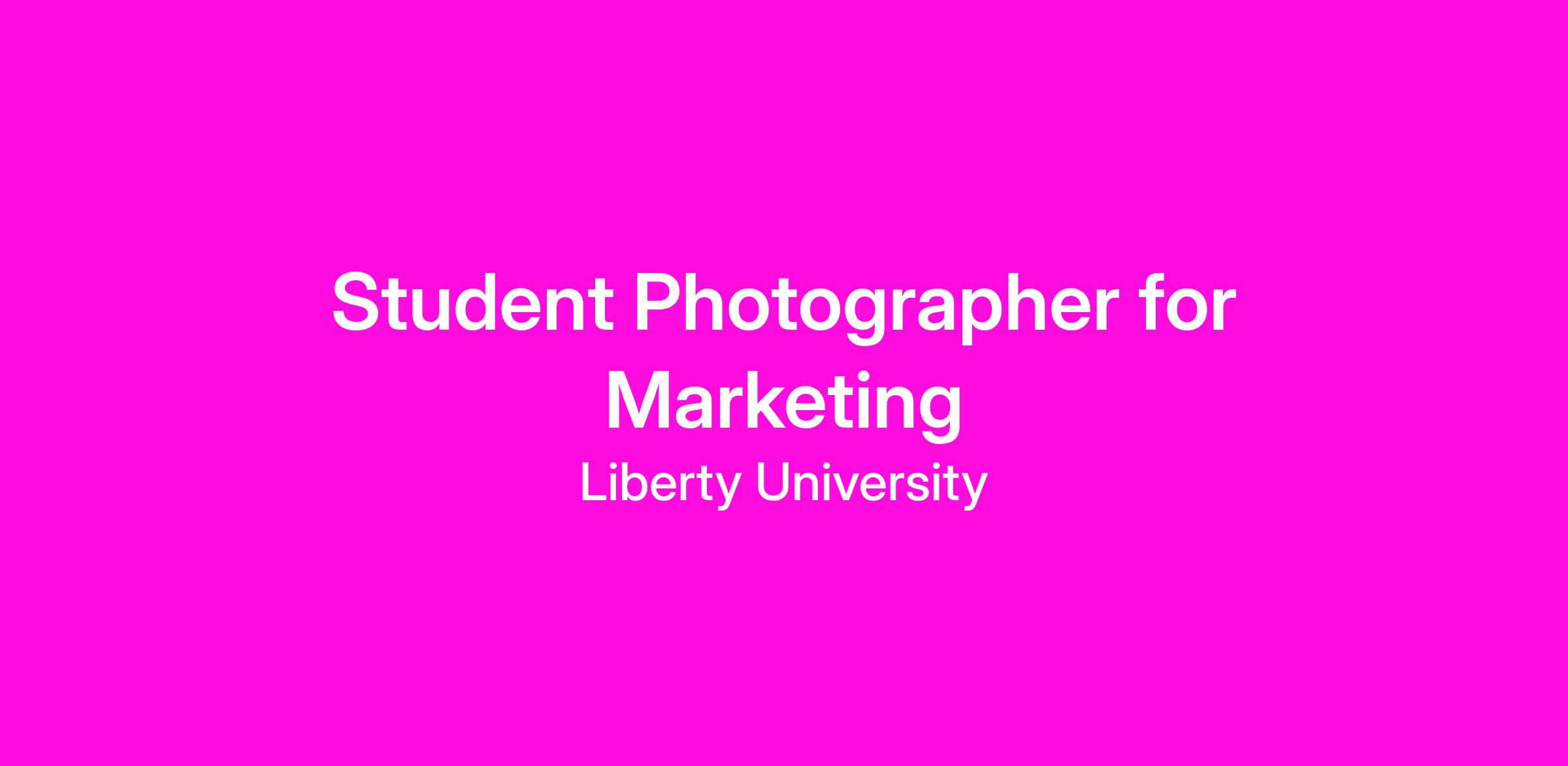 The Student Photographer position within the Marketing Department works with the photo team to produce high quality visual content that documents the history and promotes the mission of Liberty University. Candidates should be familiar with the entire photo production process and have an understanding of various camera platforms. Student photographers will primarily focus on event-based photo coverage around campus to build up a library of imagery and must be able to work events on nights and weekends. Student photographers will also assist on larger promotional shoots working alongside many different departments on campus.