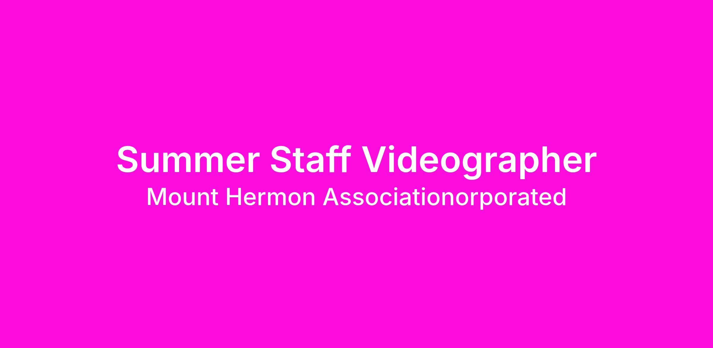 The Videographer is a Ministerial position. Ministerial staff render their work, stewardship, relationships and behavior as evidence of being followers of Jesus Christ while embracing and affirming Mount Hermon Association, Inc.’s (“MHA”) mission, vision and beliefs. They are responsible for defining, cultivating and leading MHA’s Christian community, conference programs, and retreats.