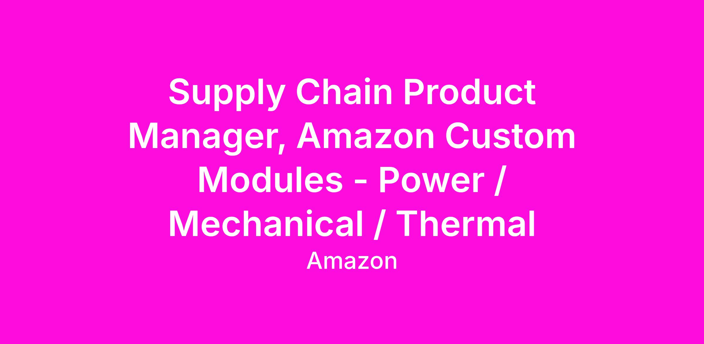 Supply Chain Product Manager, Amazon Custom Modules - Power / Mechanical / Thermal