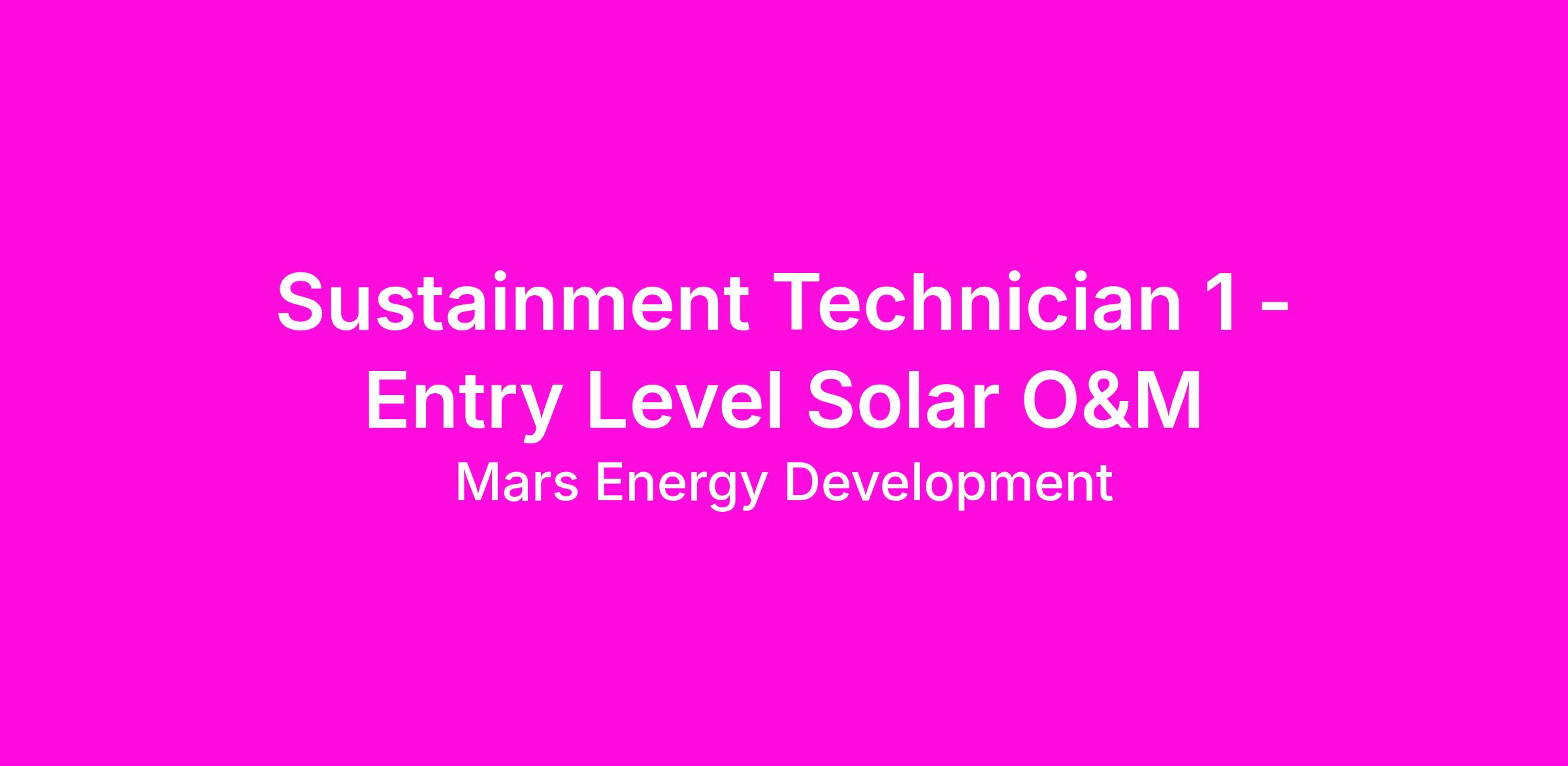 The Sustainment Technician I is a field-based role responsible for supporting the maintenance, inspection, and basic service of residential and commercial solar PV systems. This position works under the direction of senior technicians and the Service Manager to ensure system performance, safety, and reliability.