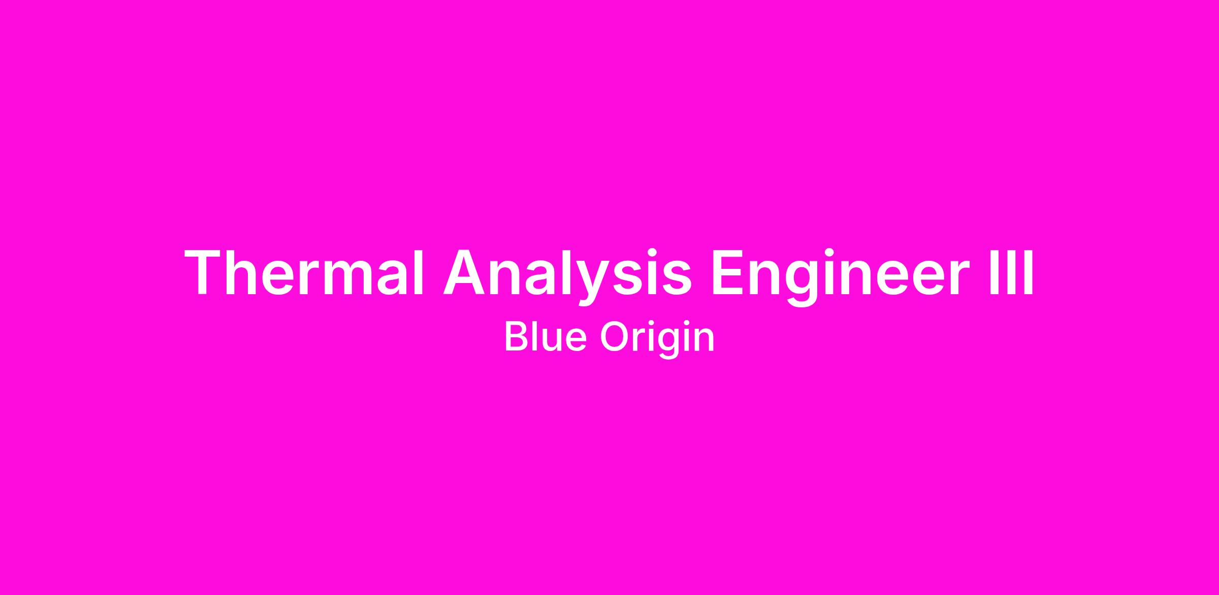 You will be a Thermal Analysis Engineer III within the Thermal Product Team. You will be responsible for performing and leading thermal analysis projects at system-level and/or subsystem-level for our lunar landers during ground, launch, Earth orbit, cis-lunar space, lunar orbit, and lunar surface mission phases.