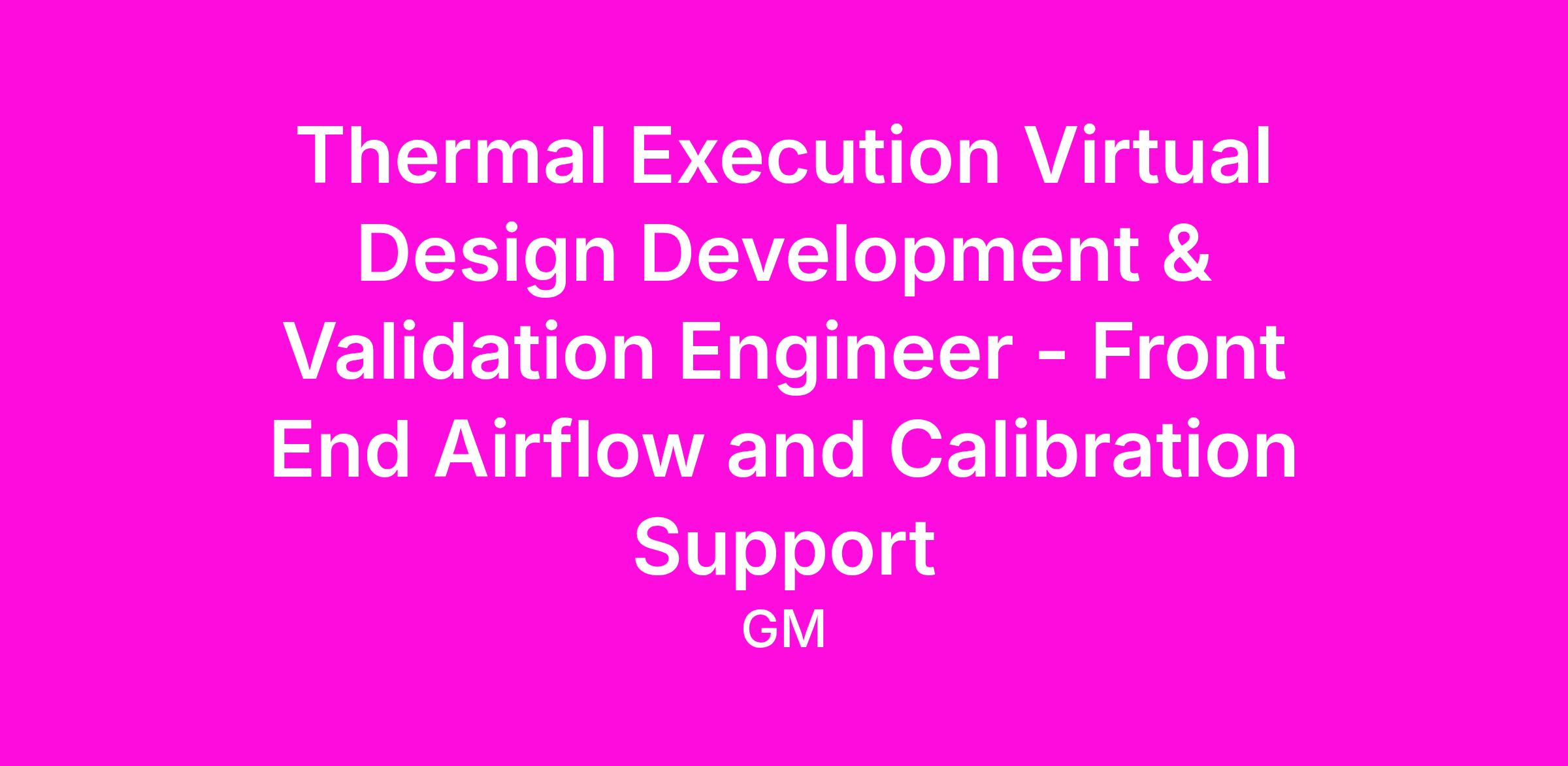Thermal Execution Virtual Design Development & Validation Engineer - Front End Airflow and Calibration Support