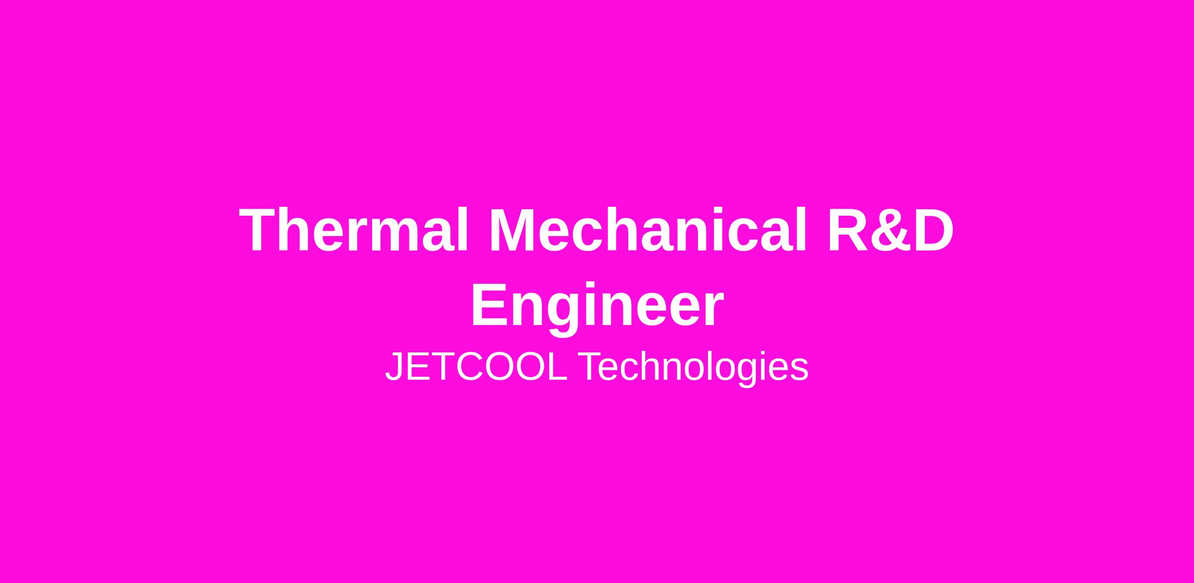 JetCool is an Equal Opportunity Employer and employment selection decisions are based on merit, qualifications, and abilities. We do not discriminate based on: age, race, religion, color, sex, national origin, marital status, sexual orientation, gender identity, veteran status, disability, pregnancy status, or any other status protected by law. We're happy to provide reasonable accommodations to those with a disability for assistance in the application process. Please email accessibility@flex.com and we'll discuss your specific situation and next steps (NOTE: this email does not accept or consider resumes or applications. This is only for disability assistance. To be considered for a position at JetCool, you must complete the application process first).