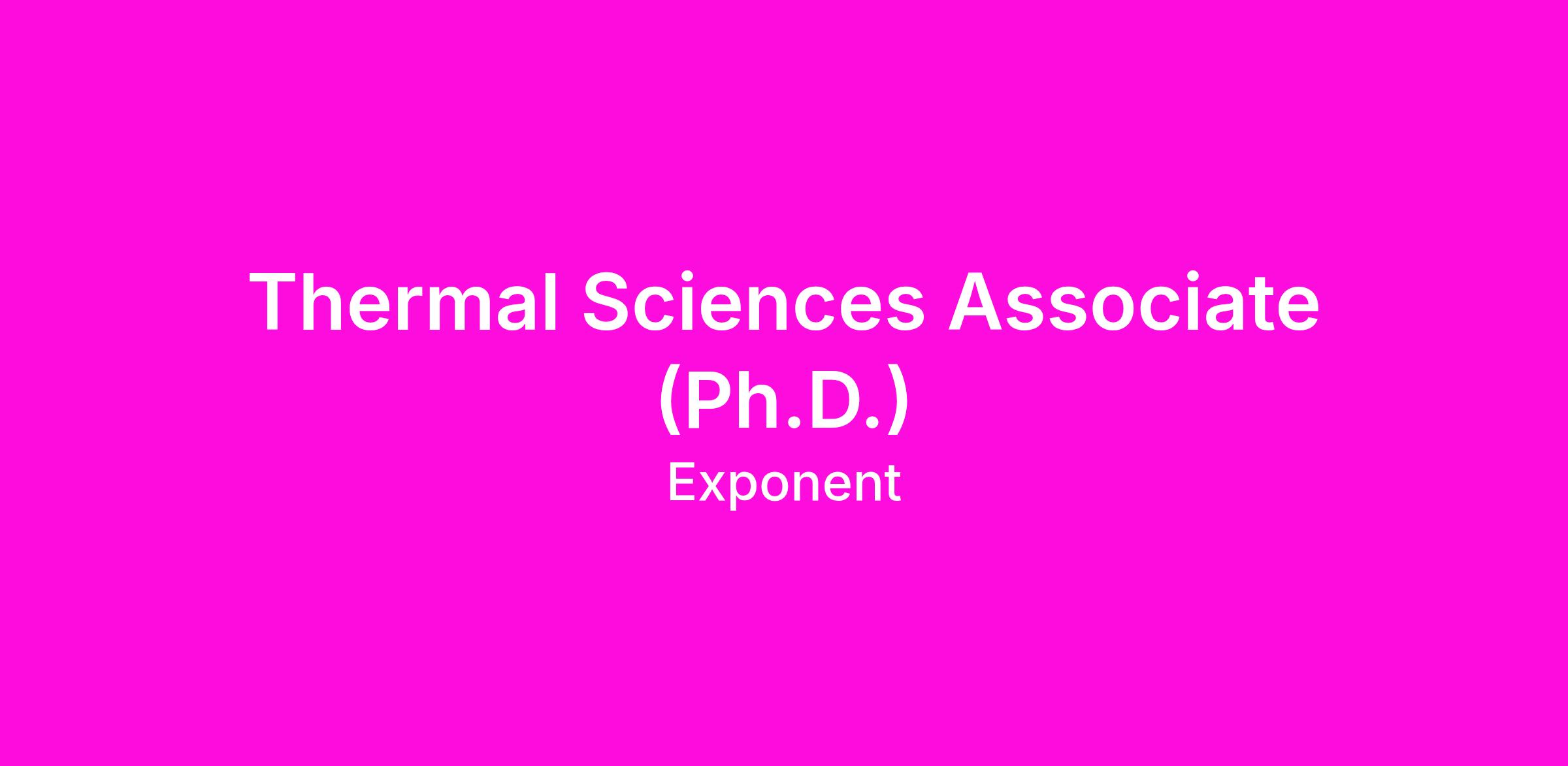 We are currently seeking a Thermal Sciences Associate for our Thermal Sciences Practice in Menlo Park, CA. This position will involve applying fundamental engineering and scientific techniques to real-world problems in failure analysis risk mitigation and product development.
