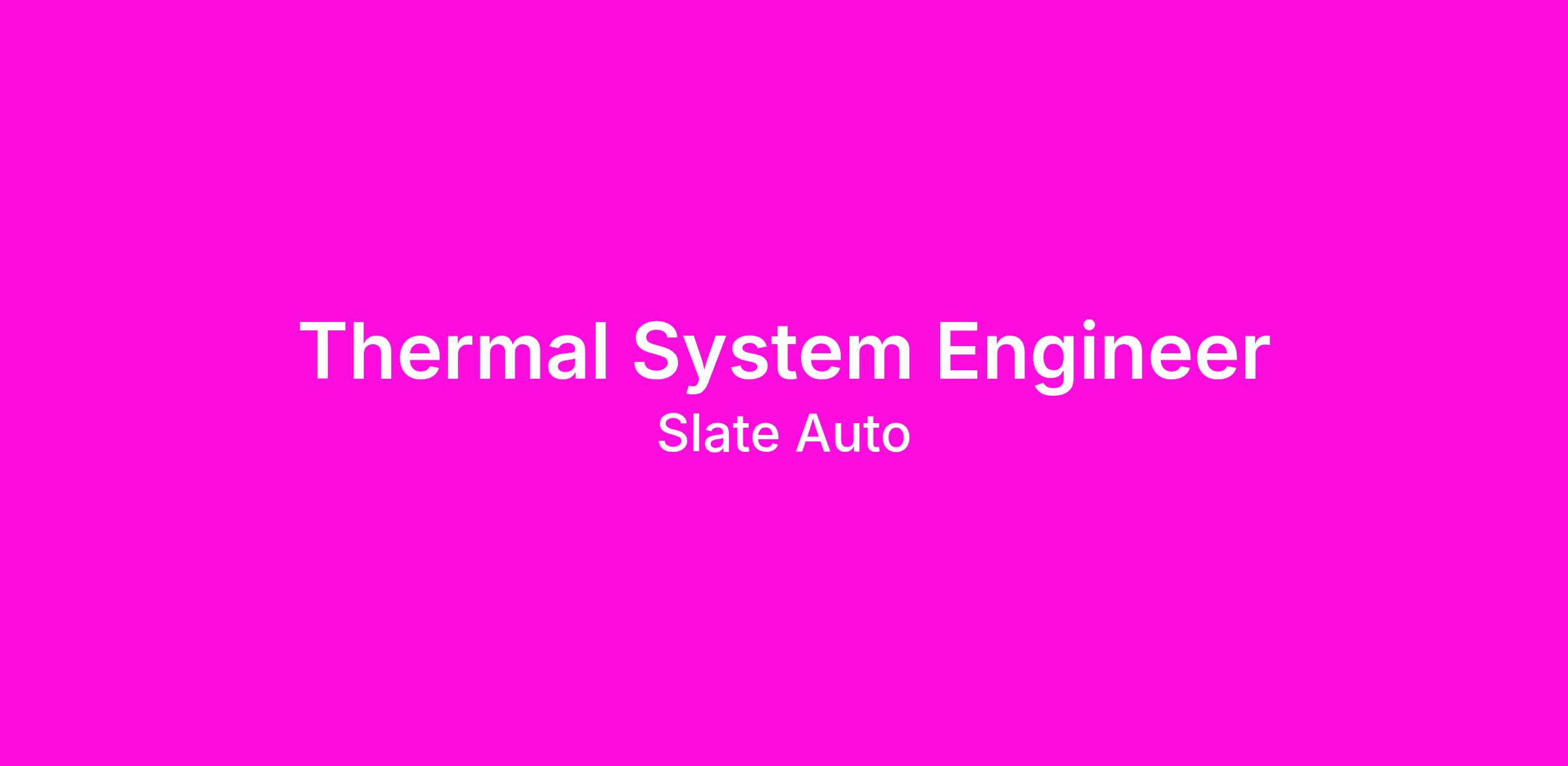 The Thermal Systems group at Slate is looking for an upbeat, fun, organized, experienced Engineer, Thermal System to join our growing team. Responsibilities include but are not limited to pedal