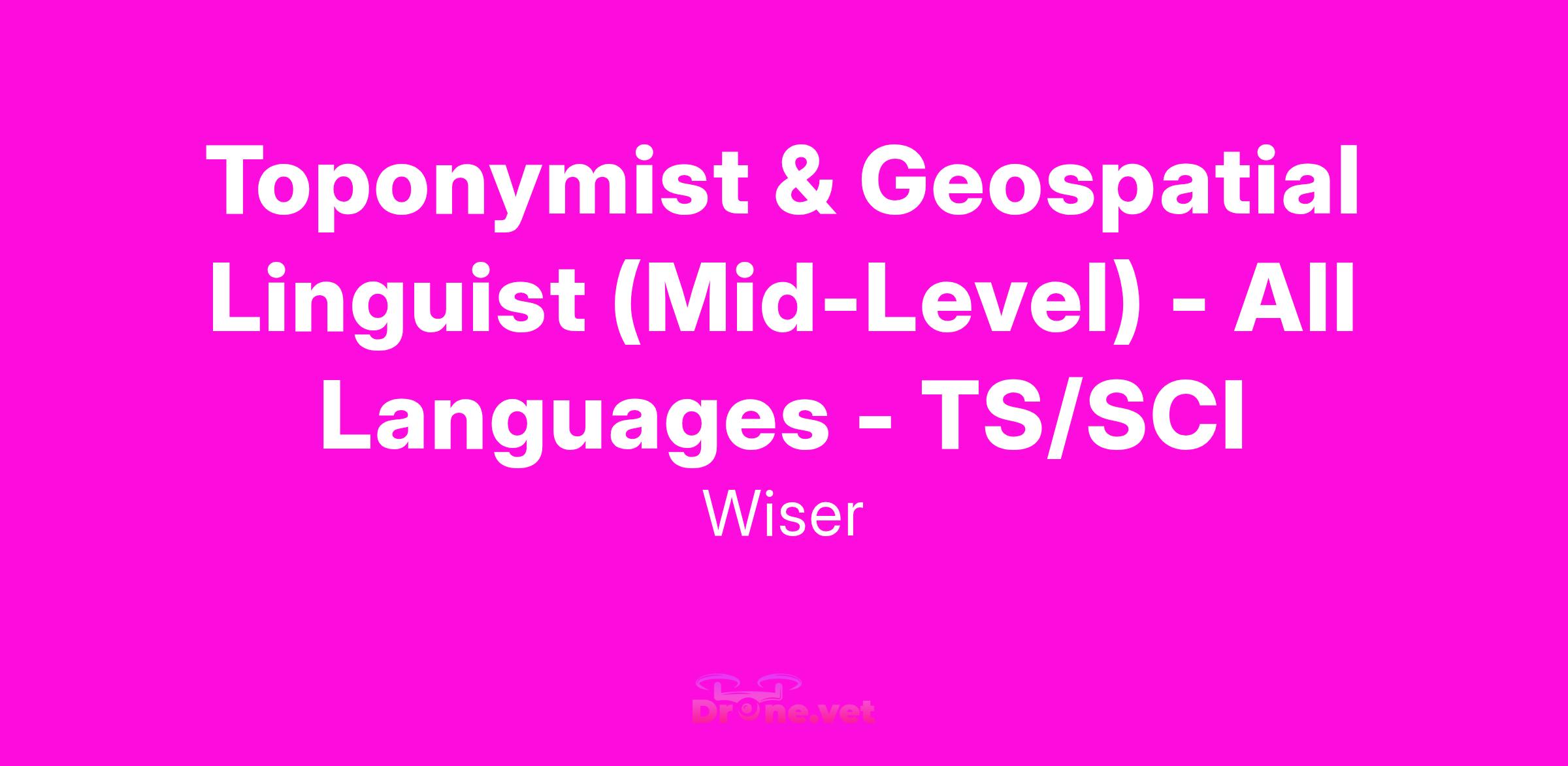 Toponymist & Geospatial Linguist (Mid-Level) - All Languages - TS/SCI