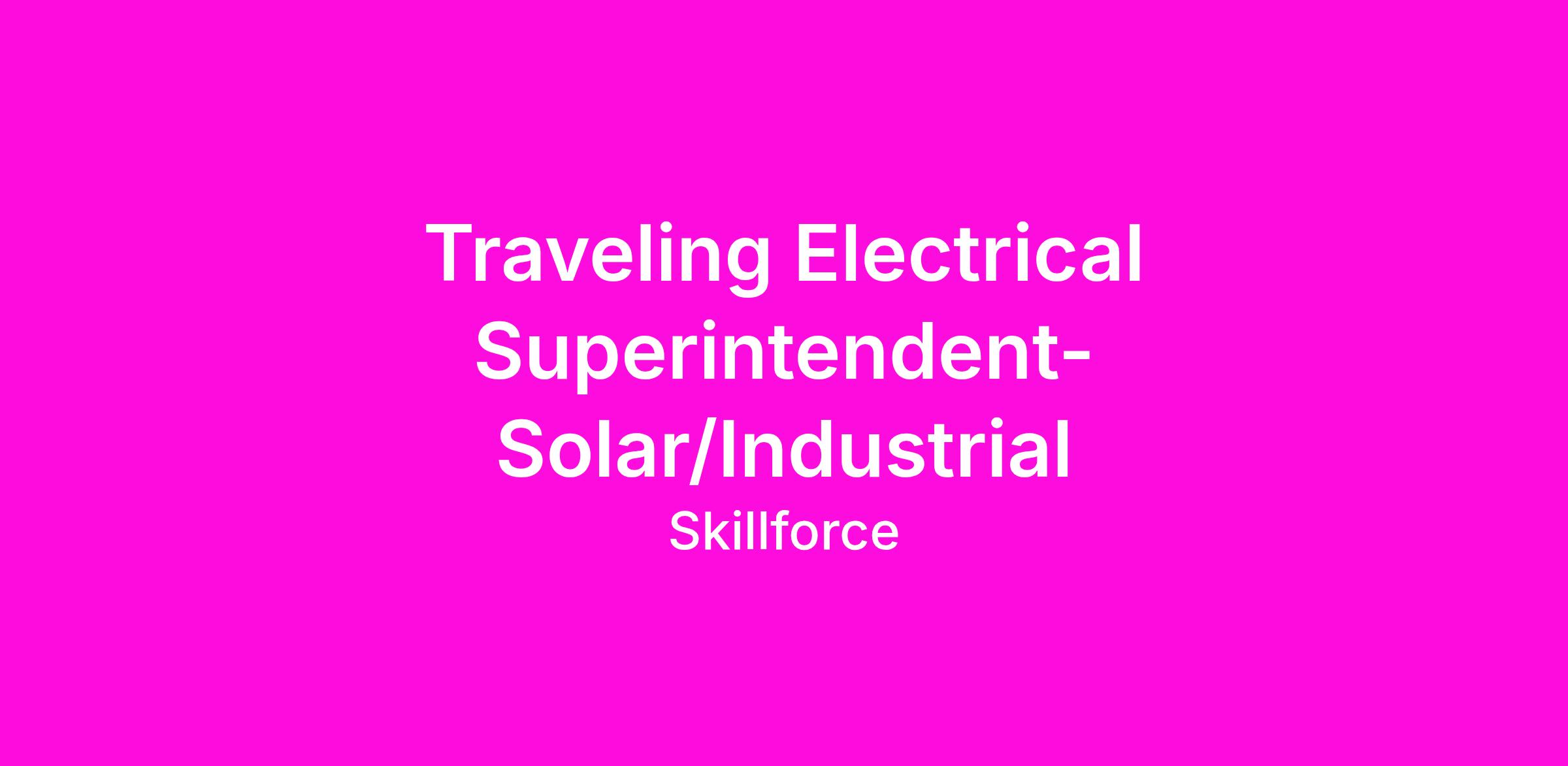 Skillforce has teamed up with an industry leading industrial contractor to find a skilled Electrical Superintendent for industrial projects such as solar and mining . This is a full time traveling position.
