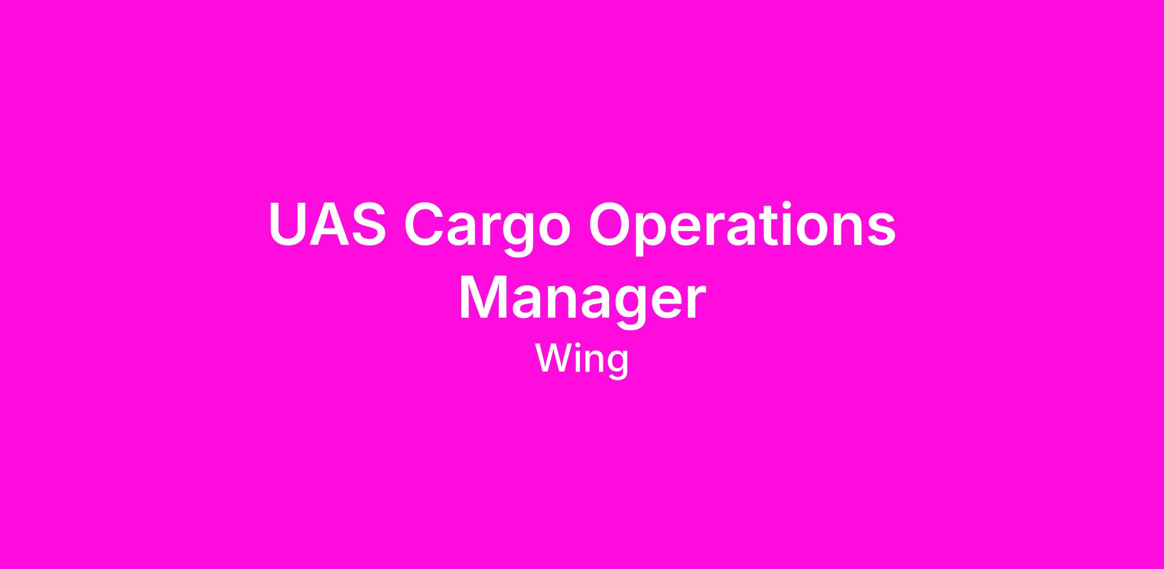 - Manage Wing’s UAS cargo special provisions program and ensure Wing compliance with its UAS cargo regulatory authorizations