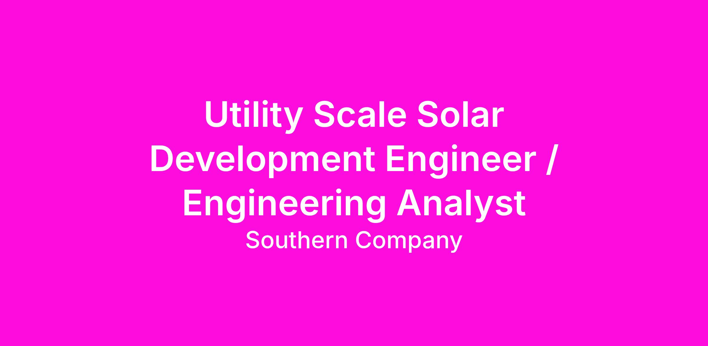 DescriptionUtility Scale Solar Development Engineer / Engineering Analyst