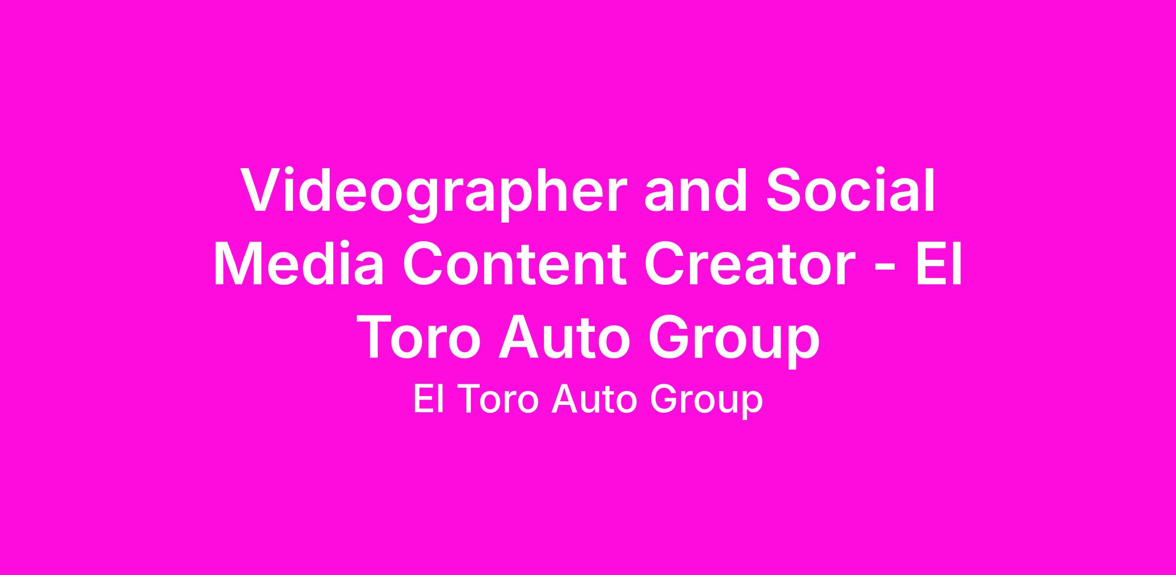 If you are a creative professional who enjoys producing high-impact digital content and telling compelling stories through video, we encourage you to apply and become part of the El Toro Auto Group team π