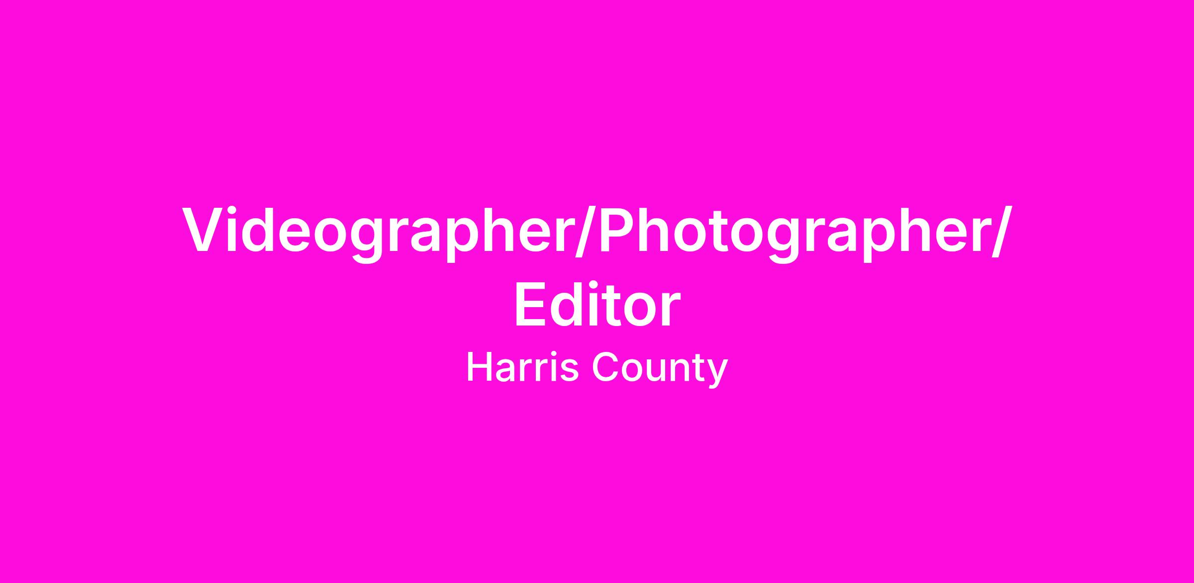 The Videographer/Photographer/Editor is responsible for shooting and editing video and photography for projects that support and communicate Harris County Precinct 4’s mission and values. The incumbent will work as one or more of the following on most projects: video editor, photo editor, motion graphics artist, teleprompter operator, sound engineer, videographer, and/or photographer. While the primary responsibility is to shoot and edit video and photos for Precinct 4’s marketing, communications, and public relations, the Videographer/Photographer/Editor will also work on projects for other divisions and entities as needed. The primary responsibility of this role will be either as editor or as videographer/ photographer as determined by division needs.